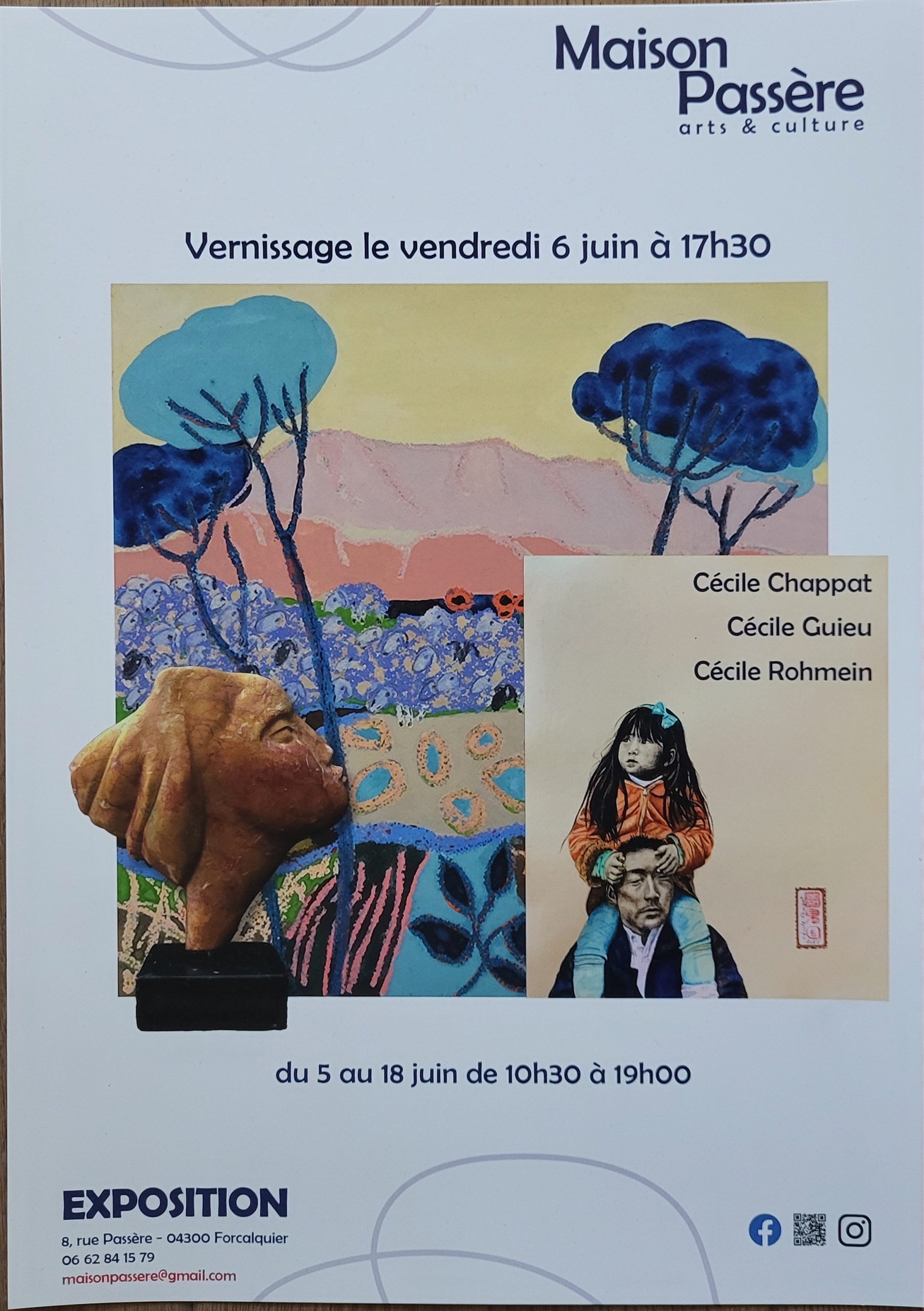 Exposition Collective de peintures et sculptures avec cécile Chappat et Cécile Rohmein, 8 rue passère – 04300 FORCALQUIER